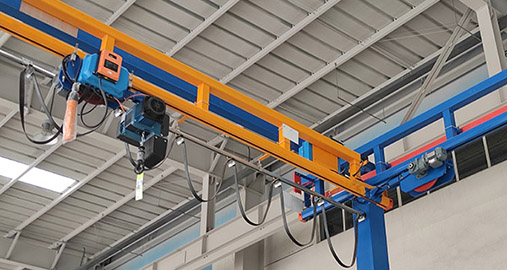 ● 可沿墻上或其他支承結構上的高架軌道運行的懸臂起重機。● 壁行吊使用場合為跨度較大、建筑高度較大的車間或倉庫,靠近墻壁附近處吊運作業較頻繁時較適合。